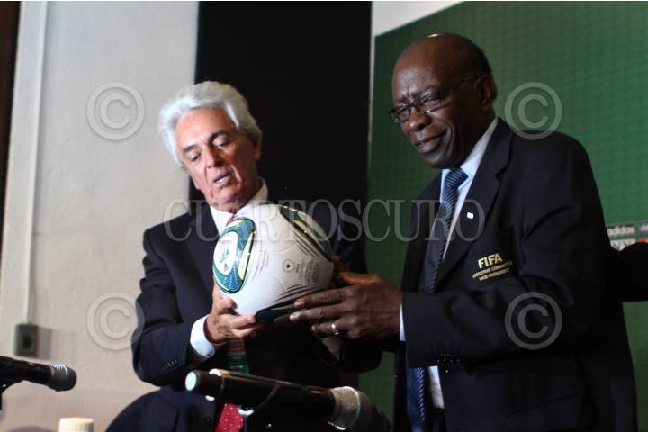 MÉXICO, D.F., 17MAYO2011.- Justino Compean, presidente de la Femexfut y Jack Warner, Vicepresidente de la FIFA; durante una conferencia de prensa al termino del Sorteo Oficial de la Copa Mundial de la FIFA Sub 17, que se realizo en la Sala Nezahualcóyotl de Ciudad Universitaria. FOTO: RODOLFO ANGULO/CUARTOSCURO.COM