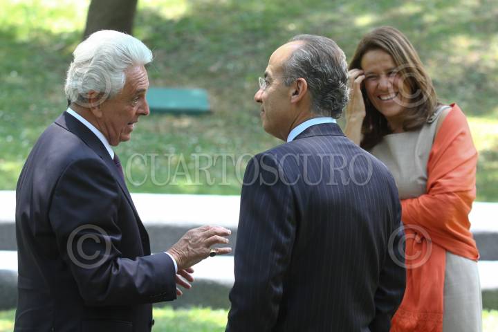 MÉXICO, D.F., 10JULIO2011.- Felipe Calderón Hinojosa, Presidente de los Estados Unidos Mexicanos, su esposa Margarita Zavala, Justino Compeán, presidente de la Federación Mexicana de Fútbol, previo al juego entre la selección mexicana, la cual ganó 2-0 a su similar uruguaya, en el Estado Azteca. FOTO: DEMIÁN CHÁVEZ/CUARTOSCURO.COM