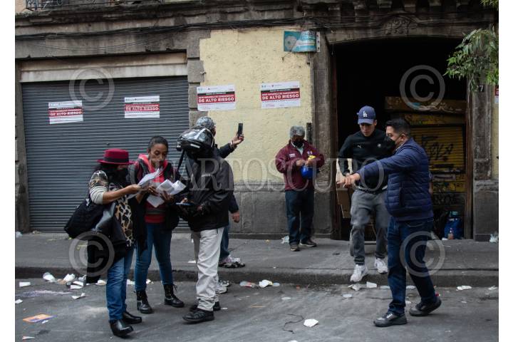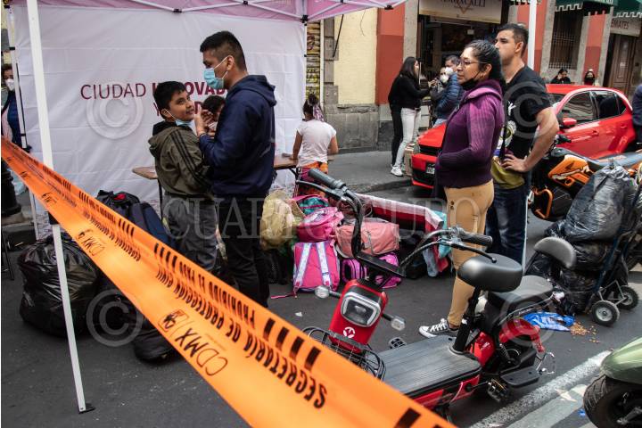 Vecinos y afectados ayudan a sacar cosas de la vecindad que se derrumbo el día de ayer al rededor de las 10:30 de la noche ubicada en Justo Sierra 27. Afectados se mantienen en la zona y piden apoyo ante la situación, también hubo 2 heridos que se mantienen estables.
