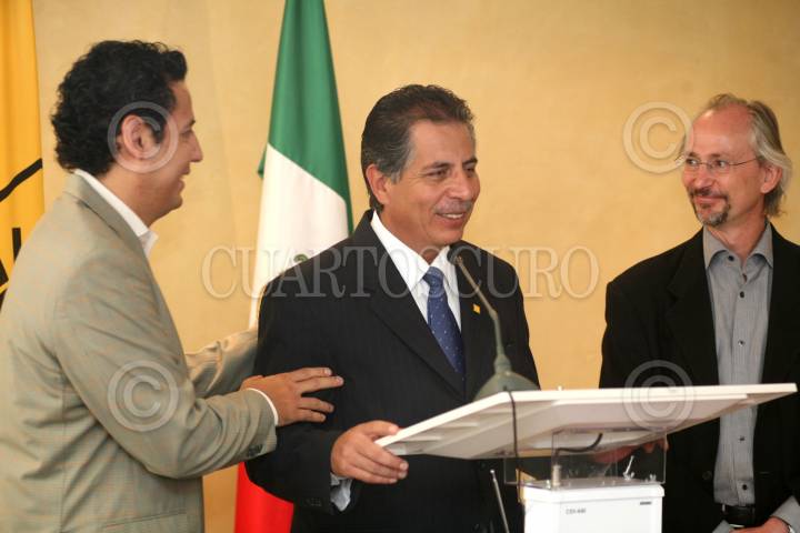 MÉXICO, D.F., 09AGOSTO2010.- Ángel Ávila, secretario nacional de Asuntos Juveniles del PRD, junto a Jesús Ortega, Presidente Nacional de PRD y Thomas Manz, director de la Fundación Friedrich Ebert en México, durante la conferencia de prensa que realizaron el día de hoy en la Sede Nacional de dicho Partido. FOTO: CUARTOSCURO.COM