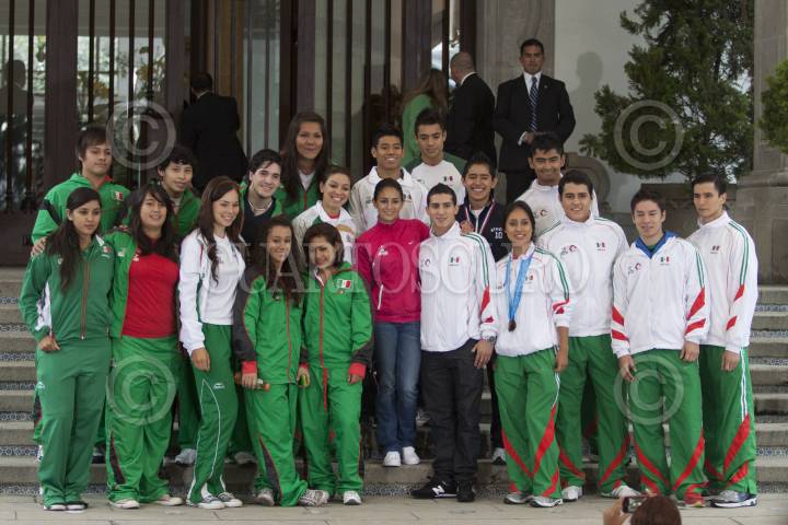 MÉXICO, D.F., 06SEPTIEMBRE2011.- Los deportistas ganadores de medallas en mundiales juveniles y la universiada mundial 2011 realizada en China se tomaron la foto en las escalinatas de la residencia oficial de Los Pinos. Los atletas fueron recibidos por Felipe Calderón Hinojosa, Presidente de los Estados Unidos Mexicanos. FOTO: MOISÉS PABLO/CUARTOSCURO.COM