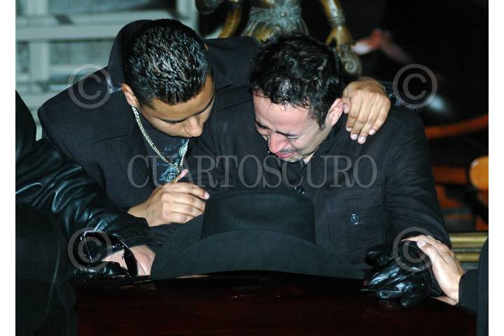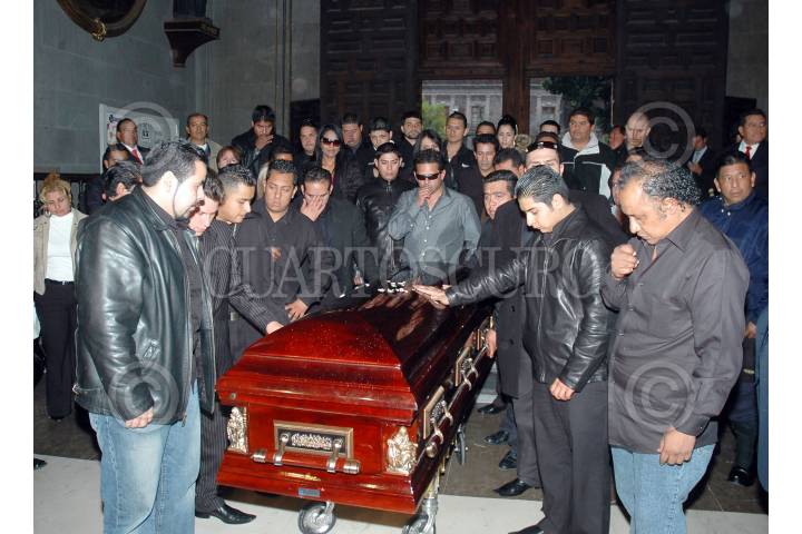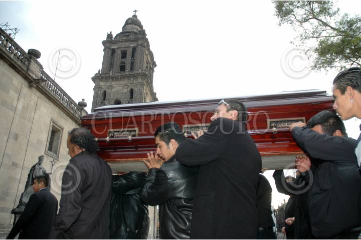 MÉXICO D.F., 05DICIEMBRE2007.- El féretro de Sergio Gomez, vocalista del grupo de pasito durangenze K-Paz de la Sierra arriba a la Catedral Metropolitana en donde se le oficio una misa de cuerpo presente en donde asistieron familiares, amigos y seguidores del artista. FOTO: RODOLFO ANGULO/CUARTOSCURO.COM