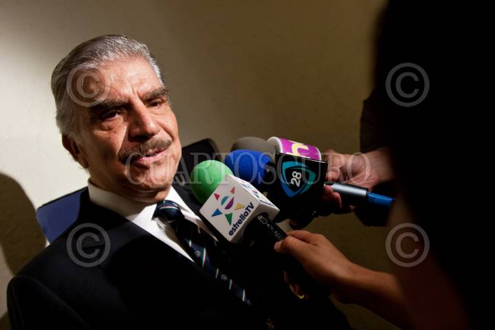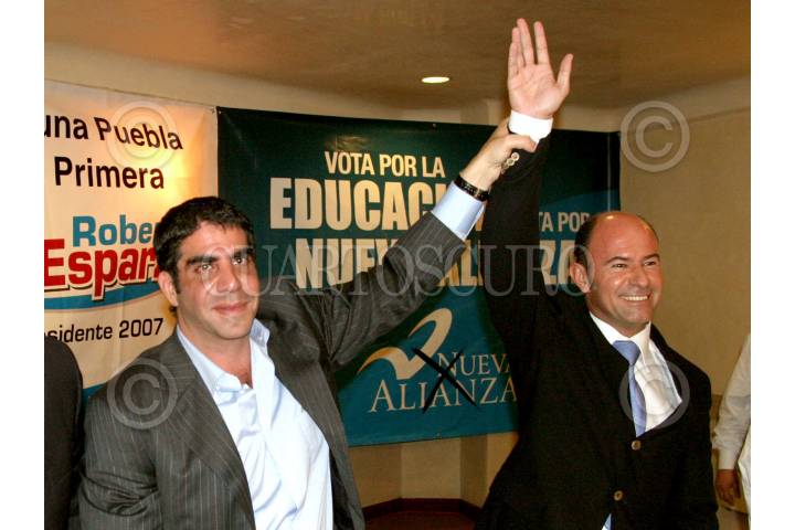 PUEBLA, PUEBLA ,13 SEPTIEMBRE 2007.-El dirigente nacional del Partido Nueva Alianza, Jorge Kahwagi, estuvo en Puebla para anunciar formalmente el inicio de campaña del ex futbolista, Roberto Ruiz Esparza, quien contiende a la presidencia municipal por ese Partido. FOTO: CARLOS SEOANE/CUARTOSCURO.COM