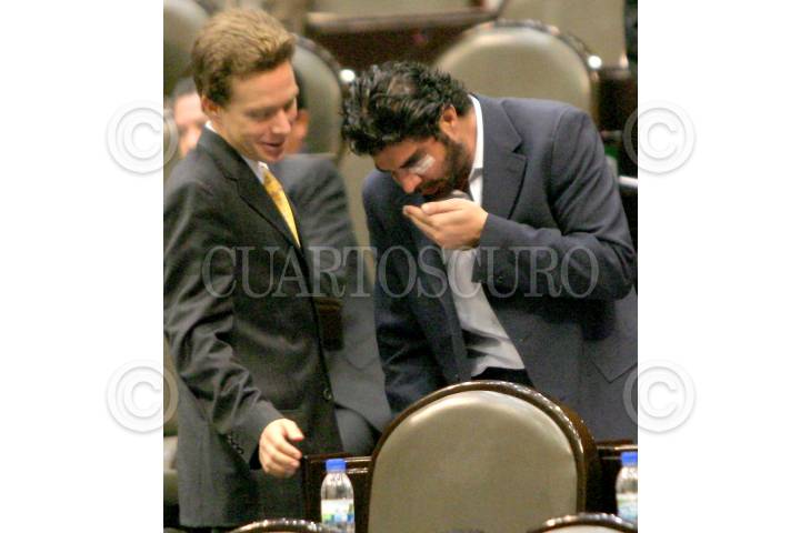 MEXICO D.F. 26 OCTUBRE2004.- Durante la sesión en la Cámara de Diputados, el legislador del PVEM, Jorge Kahwagi se presentó con varios golpes en la cara, debido a un entrenamiento. FOTO: Germán Romero/CUARTOSCURO.COM
