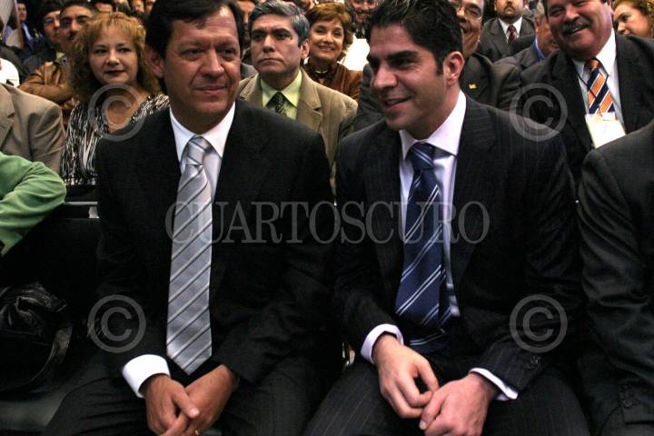 MEXICO, D.F. 29NOVIEMBRE2006.- Roberto Campa y Jorge Kahwagi durante el cambio de presidente nacional del partido Nueva Alianza. FOTO: NELLY SALAS/CUARTOSCURO.COM