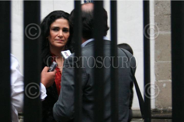 CANCÚN, QUINTANA ROO, 29SEPTIEMBRE2006.- La periodista Lydia Cacho, durante su careo con el empresario Kamel Nacif, en donde la autora de "Los demonios del Edén" ratificó sus denuncias contra el llamado "Rey de la mezclilla". FOTO: AMARANTA PRIETO/CUARTOSCURO.COM