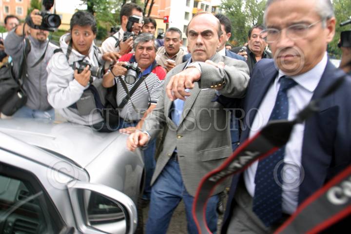 MEXICO, D.F. 16MAYO2006.- El empresario textilero Kamel Nacif, acudió a la fiscalía de delitos en contra de periodistas de la PGR, en donde se le leyo la demanda interpuesta por la periodista Lydia Cacho. El acusado de pederastía salió empujando a periodistas y acompañado de sus abogados. FOTO: Moisés Pablo/CUARTOSCURO.COM