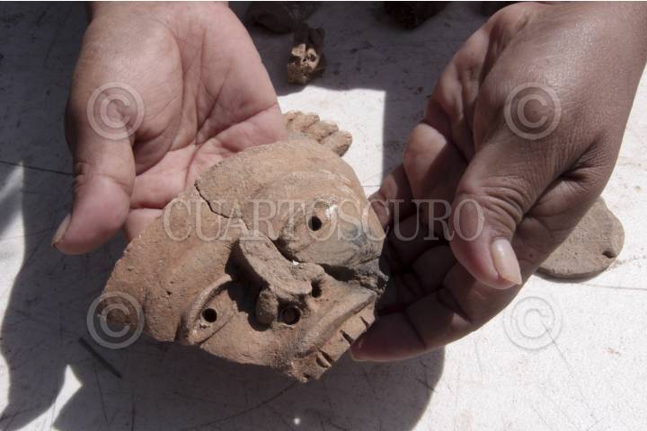 LÁZARO CÁRDENAS, QUINTANA ROO, 16OCTUBRE2012.- Se halló que un montículo ubicado en medio de la ciudad, el cual por décadas era conocido por pobladores de Kantunilkín sólo como “el cerro”, albergaba una pirámide maya hasta ahora desconocida. Con más de 50 metros de altura, es una de las más grandes de todo el mundo maya a la cual se le calcula una antigüedad de más de dos mil 300 años. Su estructura, además, concuerda perfectamente con Kantunilkín, palabra que deriva del maya Kantunich, que significa “Piedra brillante bajo el Sol”. También se encontraron un sinnúmero de objetos de cerámica, piedra y cuentas de hueso, concha y jade pobladores durante la limpieza de piramides. FOTO: CS PHOTO /CUARTOSCURO.COM