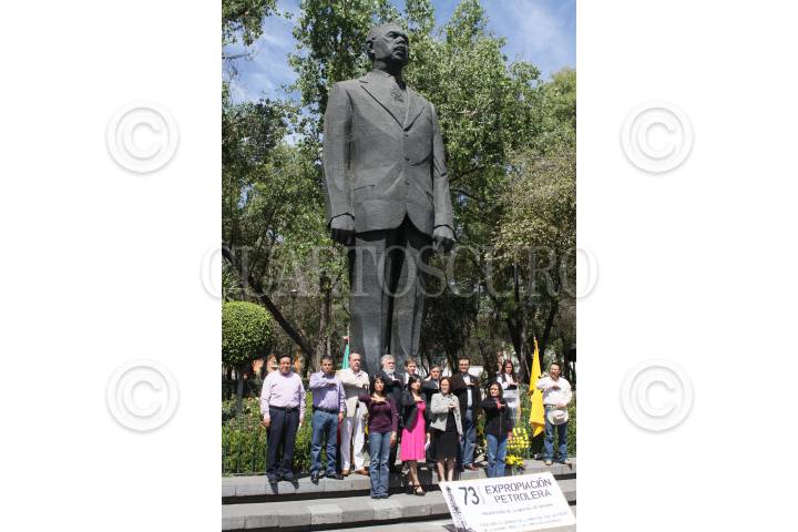 MÉXICO, D.F., 18MARZO2011.- Karem Quiroga, diputada local, Alejandro Encinas Rodríguez, coordinador de los perredistas en la Cámara de Diputados y Emilio Serrano, diputado federal, encabezó la ceremonia del 73 Aniversario de la Expropiación Petrolera por parte del General Lázaro Cárdenas del Río, en el monumento erigido en honor del michoacano sobre avenida del mismo nombre a altura de la colonia Doctores. FOTO: MOISÉS PABLO/CUARTOSCURO.COM
