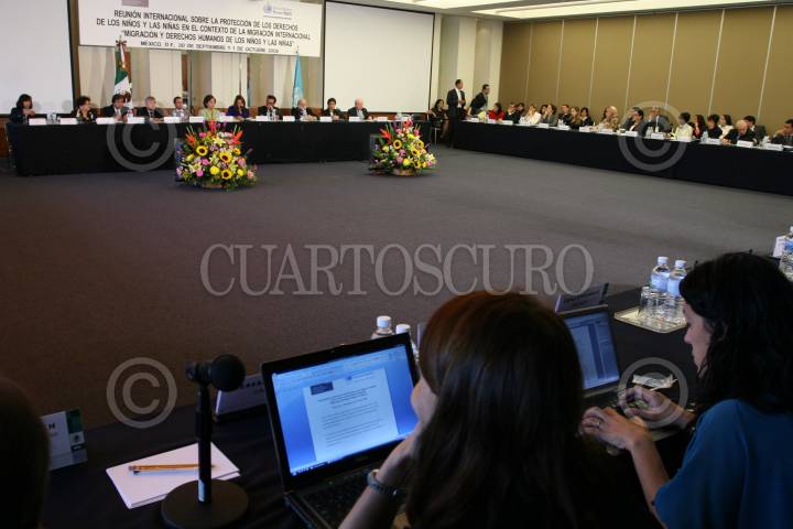 MÉXICO, D.F., 30SEPTIEMBRE2008.- Margarita Zavala, Primera Dama, Patricia Espinosa, Secretaría de Relaciones Exteriores y Karim Ghezraoui, representante del Alto Comisionado para los Derechos Humanos de la ONU, durante la reunión internacional sobre la protección de los derechos niños y las niñas en el contexto de la migación internacional "Migración y Derechos Humanos de los Niños y Niñas". FOTO: MOISÉS PABLO/CUARTOSCURO.COM