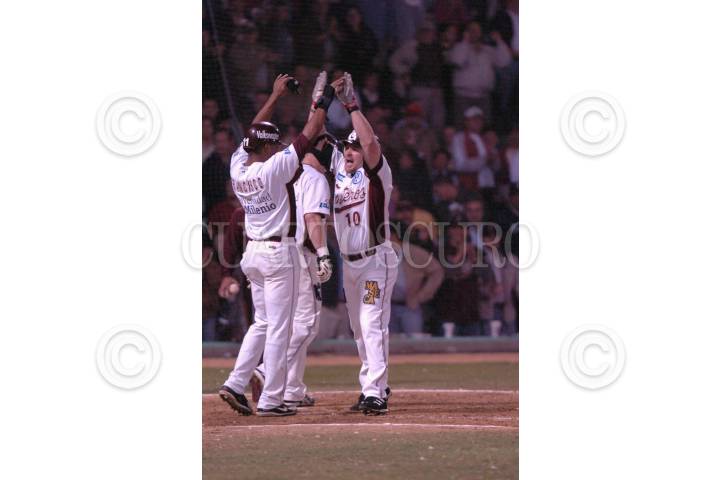 CULIACAN, SINALOA, 18ENENRO2007.- Karim Garcia, Tomateros de Culiacán, festeja su cuadrangular durante el quinto partido de la serie en contra de los Venados de Mazatlán, los locales se llevaron la victoria en un partido que disputo la noche de ayer. FOTO: EL DEBATE DE SINALOA