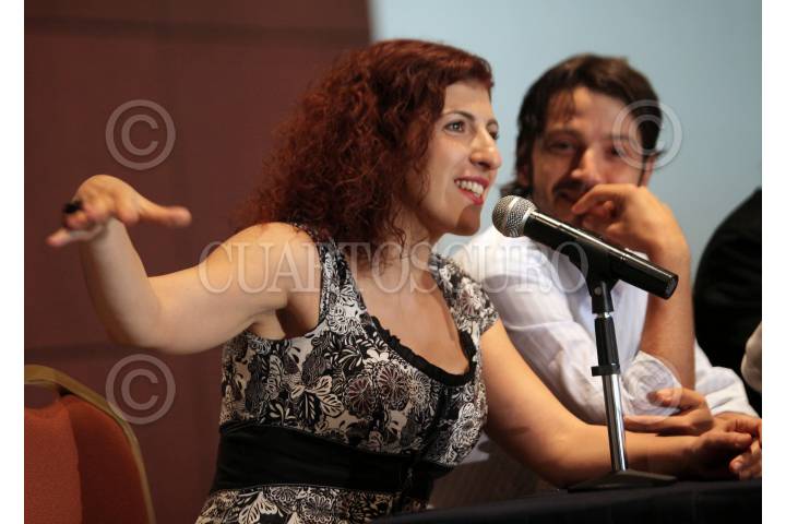 MÉXICO, D.F., 01DICIEMBRE2011.- Las actrices Irene Azuela y Karina Gidi, durante la conferencia de prensa de la película Tercera Llamada, la cual se realizó en la sala Miguel Covarrubias del Centro Cultural Universitario. FOTO: MOISÉS PABLO/CUARTOSCURO.COM