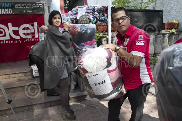 MÉXICO D.F., 08DICIEMBRE2014.- Karina Moreno Ocampo, directora de LOCATEL, realizó la primera entrega de la ropa de invierno del centro de acopio, como parte del Programa “En Frío Invierno, Calor Humano” en las instalaciones de esta institución. FOTO: GUILLERMO PEREA /CUARTOSCURO.COM