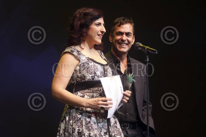 GUADALAJARA, JALISCO, 09MARZO2013.- Karina Gidi y el director Francisco Franco recibieron el premio de mejor actriz por la pelícua Tercera Llamada, en el marco de la clausura de la edición 28 del Festival Internacional de Cine en Guadalajara (FICG). FOTO: FERNANDO CARRANZA GARCÍA /CUARTOSCURO.COM