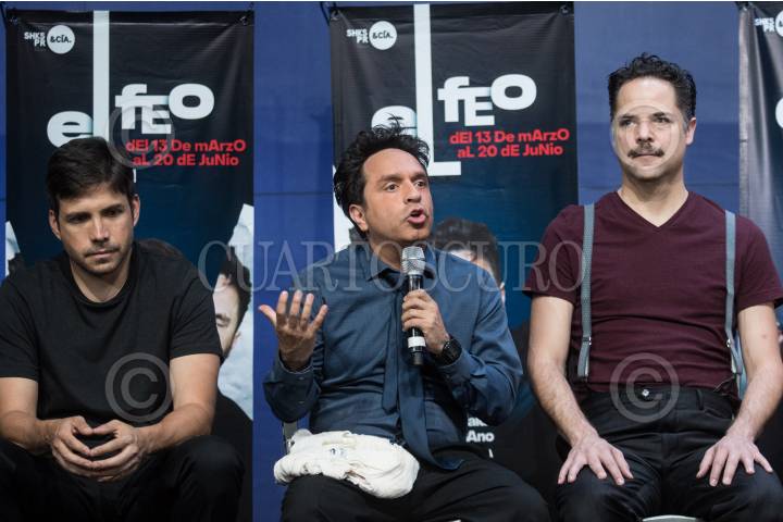 CIUDAD DE MÉXICO, 13MARZO2019.- Los actores Sergio Bonilla, Reynaldo Rossano y Artúz Chávez, durante una escena de "El Feo", obra de Marius Von Mayenburg, dirigida por Víctor Weinstock, la cual se presenta en el Teatro Milán. FOTO: ISAAC ESQUIVEL /CUARTOSCURO.COM