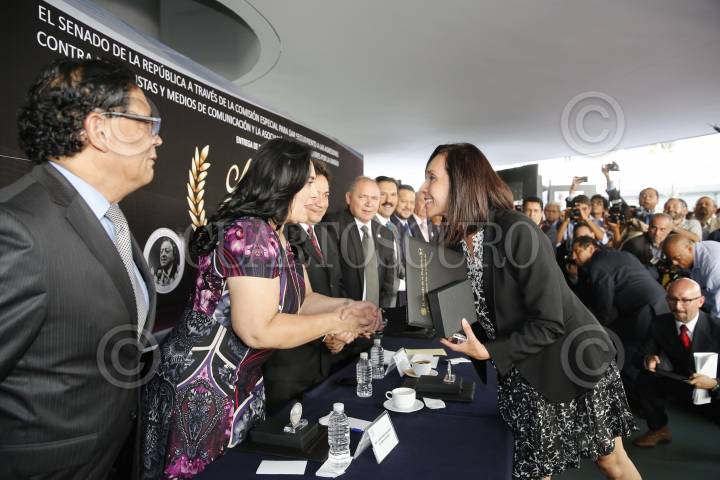 CIUDAD DE MÉXICO, 22JUNIO2016.- La periodista Karla Iberia Sánchez recibió un reconocimiento a la Trayectoria Profesional en Comunicación 2016 por el Senado de la República. FOTO: CUARTOSCURO.COM
