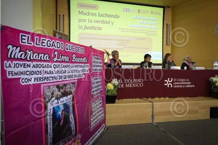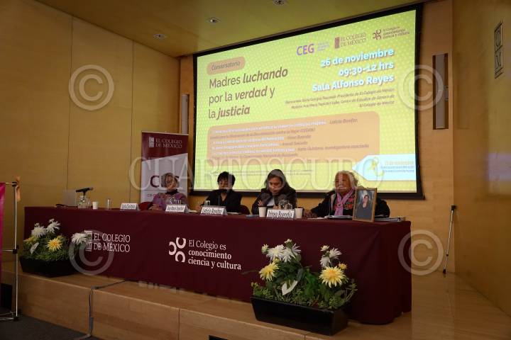 CIUDAD DE MÉXICO, 26NOVIEMBRE2024.- Karla Quintana, investigadora Colegio de México, Ana María Tepichin, Leticia Bonifaz, representante del comité para la eliminación de la discriminación contra la mujer, Irene Buendía, integrante de Justicia y justicia para las víctimas de feminicidio, durante el Conservatorio Madres luchando por la verdad y justicio realizado en el Colegio de México. FOTO: ROGELIO MORALES /CUARTOSCURO.COM