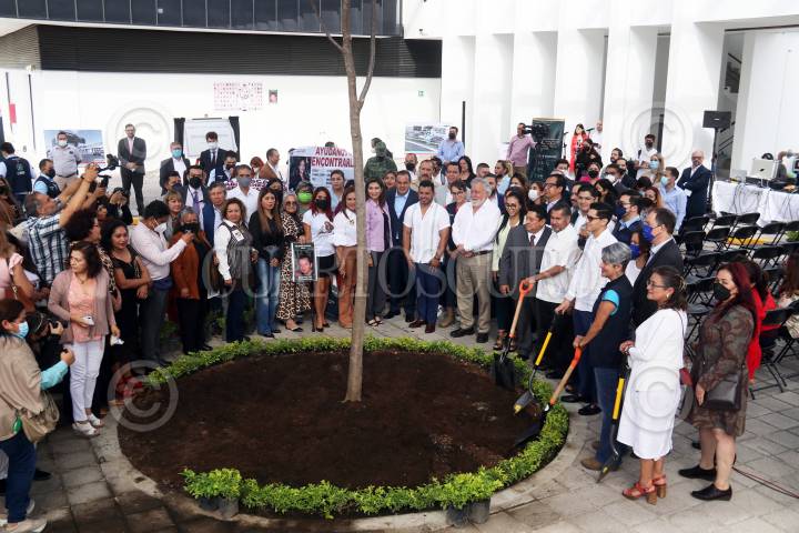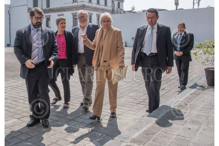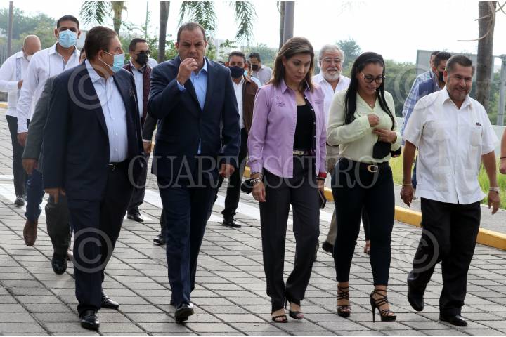 El gobernador Cuauhtémoc Blanco, acompañado de varios integrantes de su gabinete, a su izquierda Víctor Mercado, secretario de Movilidad y Transporte, Ana Cecilia Rodriguez, secretaria de Desarrollo Económico y del Trabajo, Sandra Anaya secretaria de Administración y Samuel Sotelo, secretario de Gobierno antes del inicio de las adecuaciones del inmueble que ocupará el Centro Nacional de Identificación Humana en Xochitepec, Morelos. En segundo plano el subsecretario de Derechos Humanos Alejandro Encinas.
