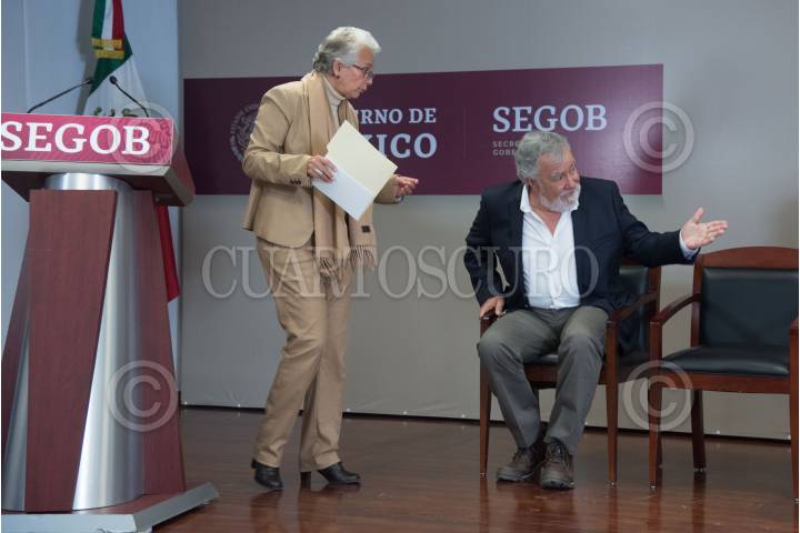 Alejandro Encinas, subsecretario de Derechos Humanos de la Secretaria de Gobernación, y Olga Sánchez Cordero, secretaria de Gobernación, durante la presentación.