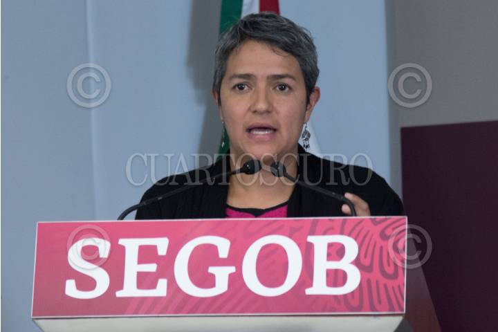 Olga Sánchez Cordero, secretaria de Gobernación, durante la presentación.
