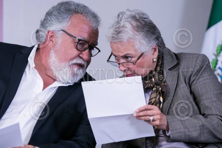 CIUDAD DE MÉXICO, 07NOVIEMBRE2019.- Alejandro Encinas, subsecretario de Derechos Humanos de la Secretaría Gobernación, y Olga Sánchez Cordero, secretaria de Gobernación, presentaron en conferencia de prensa la nueva plataforma electrónica para el reporte y registro de personas desaparecidas o no localizadas, en la que cualquier persona podrá emitir la desaparición de una persona, e incluso de forma anónima. FOTO: MARIO JASSO /CUARTOSCURO.COM