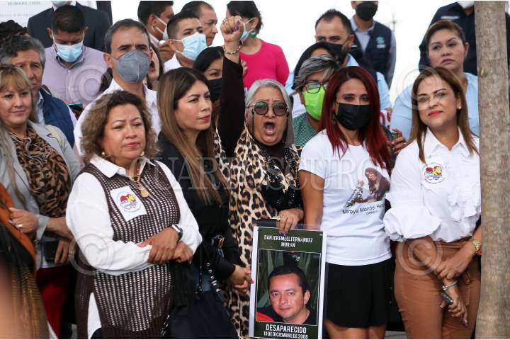 Yolanda Moran, integrante de un colectivo de búsqueda grita "vivos se los llevaron vivos los queremos" durante el inicio de las adecuaciones del inmueble que ocupará el Centro Nacional de Identificación Humana en Xochitepec, Morelos.