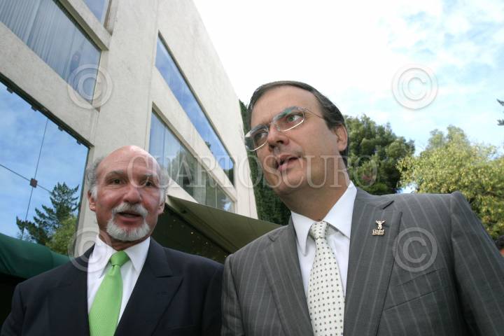 MEXICO,D.F.09OCTUBRE2007.- Marcelo Ebrad Casaubón, jefe de Gobierno del Distrito Federal y Juan Kaye López, presidente del Colegio de Arquitectos de la Ciudad a su salida de la presentación de la Convocatoria del Gobierno del Distrito Federal al Concurso Internacional "Plaza y Símbolo del Bicentenario" en el Colegio de Arquitectos de la Ciudad de México. FOTO:ROCIO ORTIZ/CUARTOSCURO.COM
