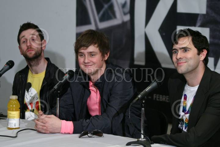 MÉXICO D.F., 27FEBRERO2008.- Richard Hughes, Tom Chaplin y Tim Rice-Oxley, integrantes del grupo británico de pop-rock Keane durante la conferencia de prensa previo al concierto que ofrecerán esta noche en el Palacio de los Deportes como parte de la promoción de su mas reciente disco Perfect Symmetry. FOTO: RODOLFO ANGULO/CUARTOSCURO.COM