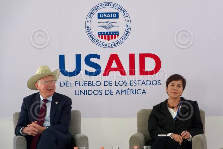 Ken Salasar y Marina Robles, durante el lanzamiento de la Alianza USAID México para Net Zero Cities en la Casa de la Universidad de California.