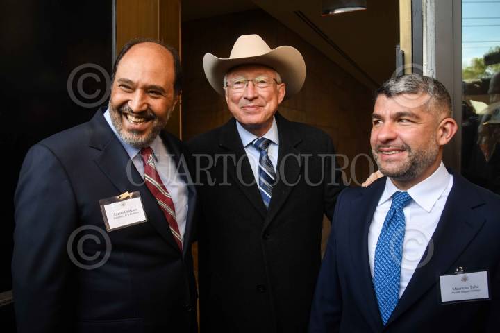 CIUDAD DE MÉXICO, 17DICIEMBRE2024.- Lázaro Cárdenas Batel, jefe de oficina de Presidencia; Ken Salazar, embajador de Estados Unidos en México, y Mauricio Tabe, alcalde de Miguel Hidalgo, durante la ceremonia de dedicación de la "Nueva embajada de Estados Unidos en Mexico" ubicada en la colonia Irrigación de la colonia Miguel Hidalgo. FOTO: MARIO JASSO/CUARTOSCURO.COM