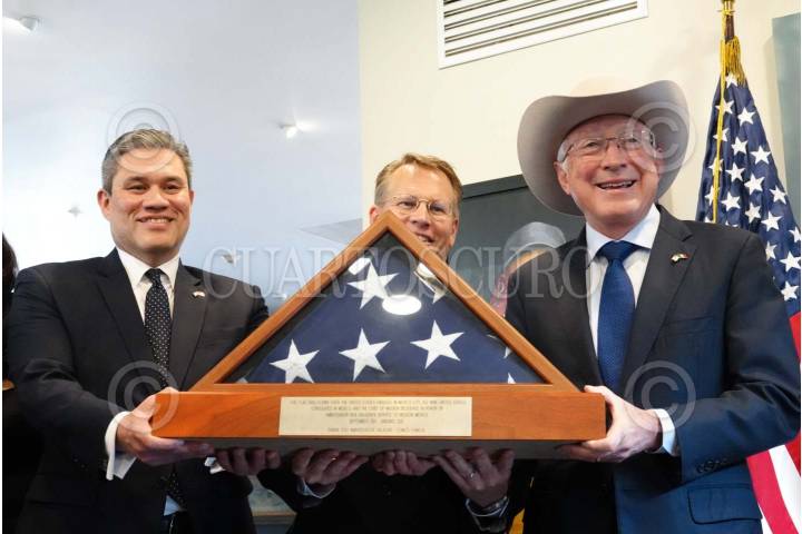 CIUDAD DE MÉXICO, 17DICIEMBRE2024.- Ken Salazar, embajador de Estados Unidos en México, encabezó la ceremonia de dedicación de la "Nueva embajada de Estados Unidos en Mexico" ubicada en la colonia Irrigación de la colonia Miguel Hidalgo. Estuvo acompañado de: William H. Moser, director de la Oficina de Operaciones de Edificios en el Extranjero de Estados Unidos, y Lázaro Cárdenas Batel, jefe de oficina de Presidencia. FOTO: MARIO JASSO/CUARTOSCURO.COM