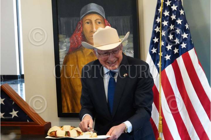 CIUDAD DE MÉXICO, 06ENERO2025.- Ken Salazar, embajador de Estados Unidos de América en México, durante una conferencia en la que partió la tradicional Rosca de Reyes en las instalaciones de esta dependencia. FOTO: GRACIELA LÓPEZ/CUARTOSCURO.COM