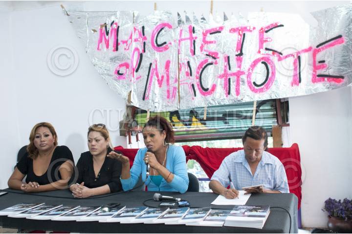 CIUDAD DE MÉXICO, 18OCTUBRE2016.- Kenya Cuevas, Cassandra Huaso y Rocío Suárez, trabajadoras sexuales transgénero, ofrecieron una conferencia de prensa para relatar los asesinatos de dos de sus compañeras y exigir a la procuraduría capitalina que esclaresca los casos. Además demandaron protección por parte de las autoridades ante la constante discriminación que sufren durante su labor. FOTO: DIEGO SIMÓN SÁNCHEZ /CUARTOSCURO.COM