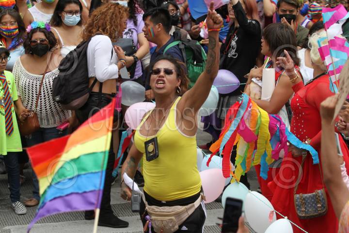 La activistaKenia Cuevas e integrantes de la comunidad LGBTTTIA+ marcharon para exigir la visibilidad de la diversidad sexual en la séptima edición que se realiza en la alcaldía Iztapalapa