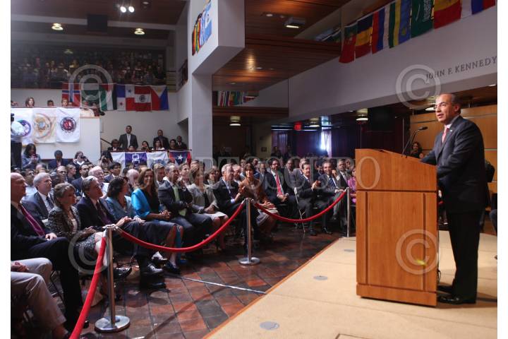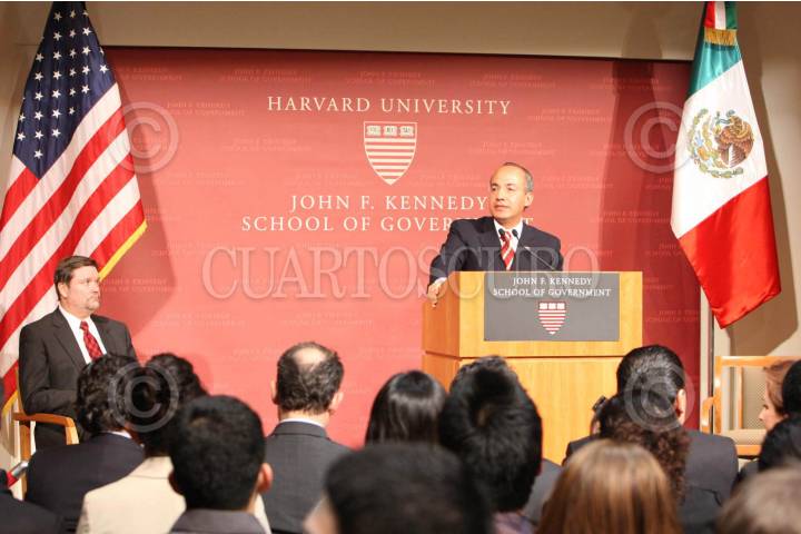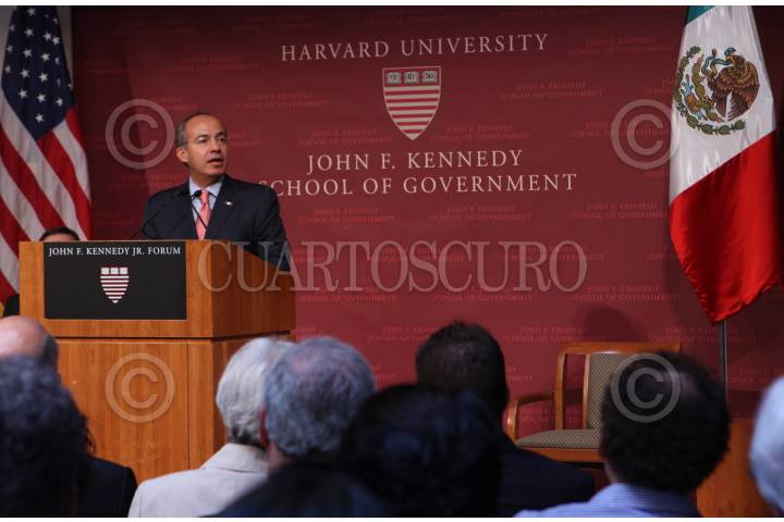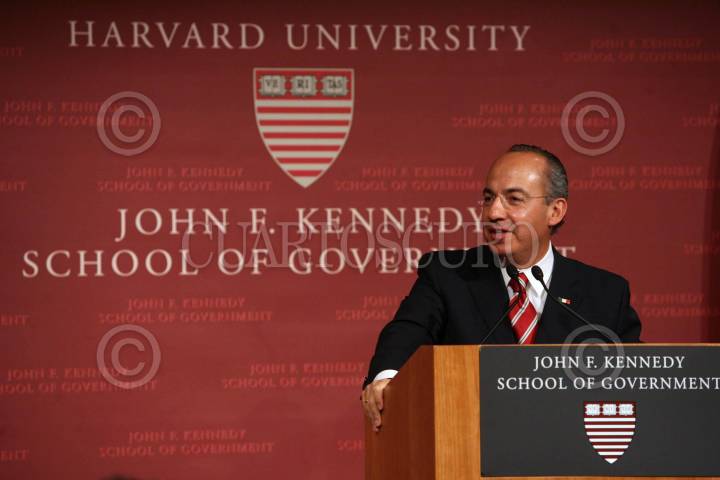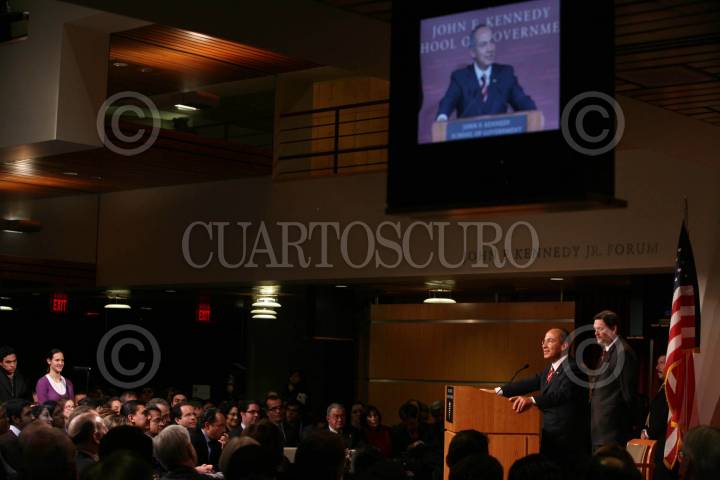 BOSTÓN E.U.11FEBRERO2008.- El presidente de México Felipe Calderón ofrecio una conferencia magistral en la escuela de gobierno "John F Kennedy" de la Univeridad de Harvard. FOTO: XIMENA DE LA SERNA/CUARTOSCURO.COM