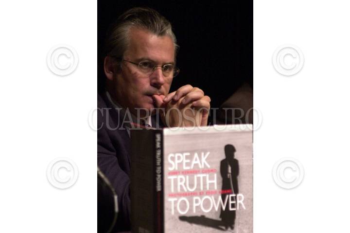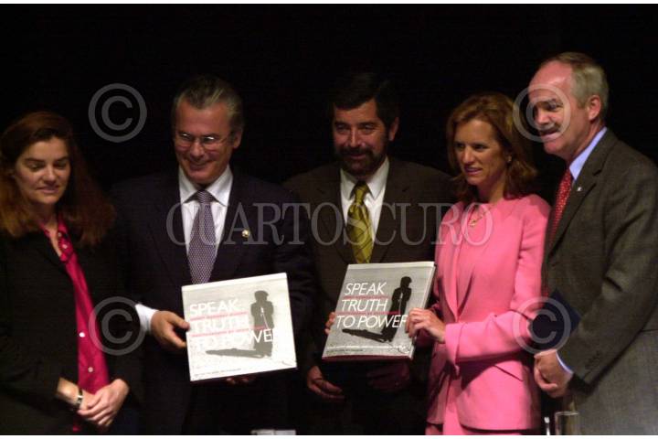 Nam Richarson, Baltazar Garzón, Juan Ramón de la Fuente, Kerry Kennedy y Bruce Harris, durante la presentación del libro "Hablar con la verdad al poder", recopilación de testimonios de luchadores sociales y promotores de los derechos humanos recabados por Kerry Kennedy. El acto se llevó a cabo en el Centro Cultural Universitario. FOTO: Juan Pablo Zamora/CUARTOSCURO.COM