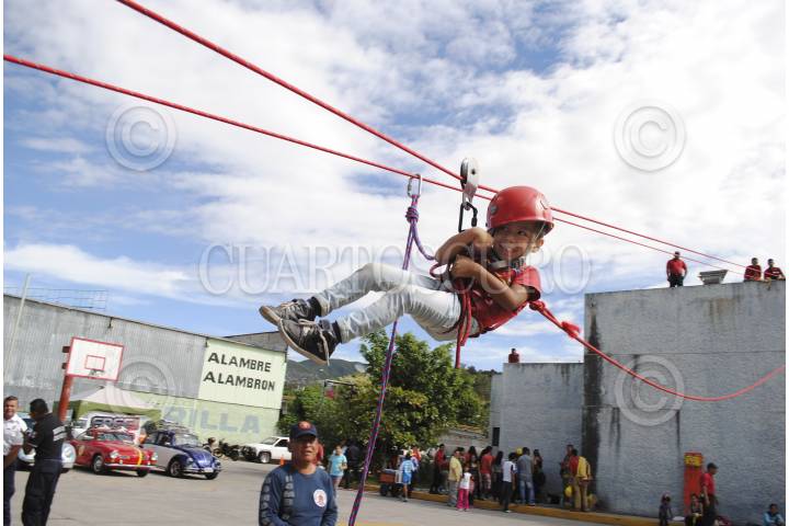 CHILPANCINGO, GUERERRO, 18OCTUBRE2015.- Elementos de bomberos realizaron un convivio para recaudar fondos y adquirir un camión que tienen en calidad de prestado y que participó en el rescate en los atentados del 11 de septiembre, cuando fueron derribadas las torres gemelas en New York; durante esta actividad niños participaron en la tirolesa, en los juegos infantiles y se tomaron fotos. Los bomberos ofrecieron una demostración que hacer en caso de incendio en el cilindro de gas, para que personas puedan actuar en este caso. FOTO: JOSÉ I. HERNÁNDEZ / CUARTOSCURO.COM
