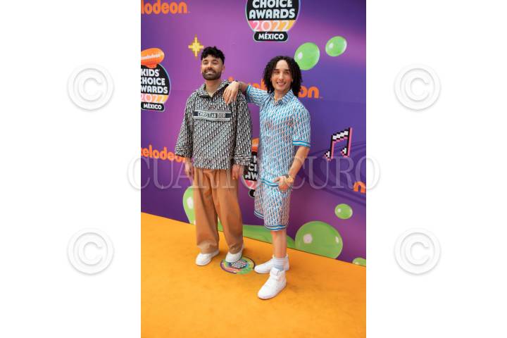 Ary Tenorio y Luisito Comunica durante la alfombra naranja de los Kids Choice Awards 2022 de Nickelodeon en el Auditorio Nacional.