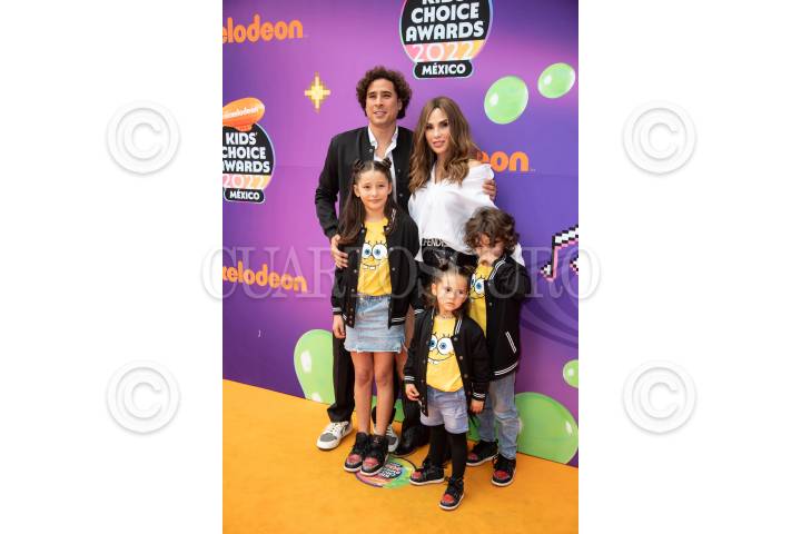 El portero Guillermo Ovchoa y su familia durante la alfombra naranja de los Kids Choice Awards 2022 de Nickelodeon en el Auditorio Nacional.