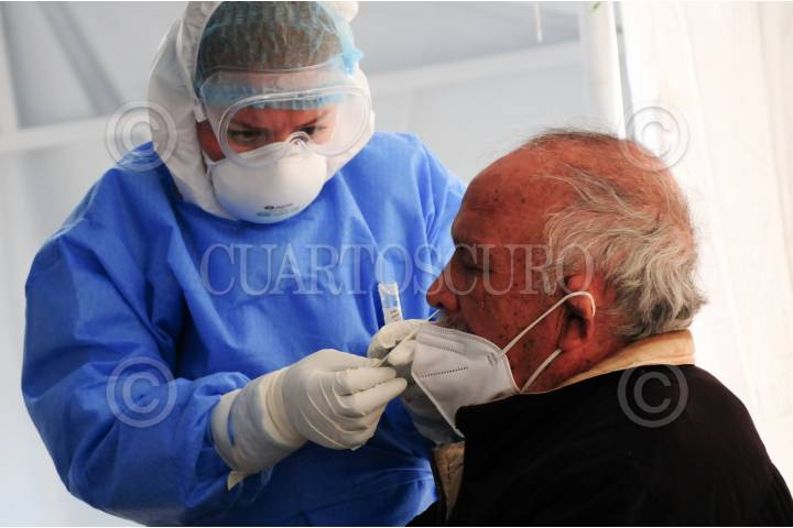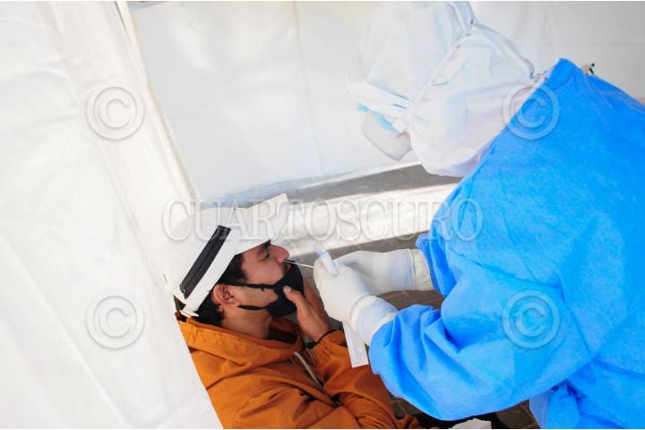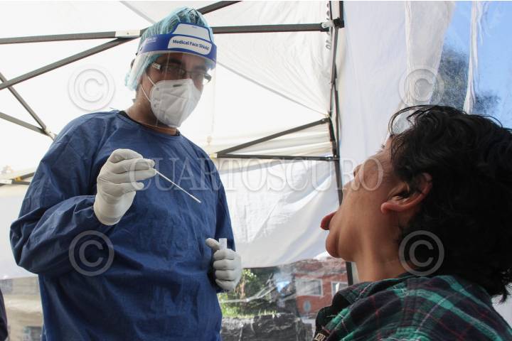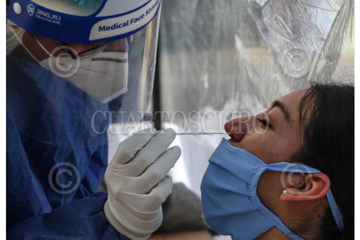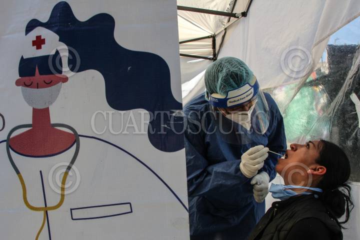 Prueba PCR para detectar Covid-19 aplicada en un kiosco de la Salud.