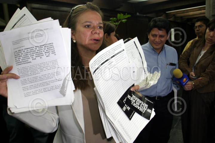 MÉXICO, D.F., 23ABRIL2007.- Edith del Carmen Klein, representante de 400 organizaciones de la sociedad civil entregó en la Asamblea Legislativa del DF miles de firmas hechas según ellas por personas que están en contra de la aprobación de la ley que despenaliza el aborto. FOTO: MOISÉS PABLO/CUARTOSCURO.COM