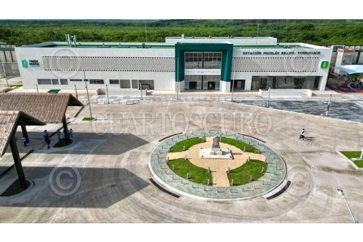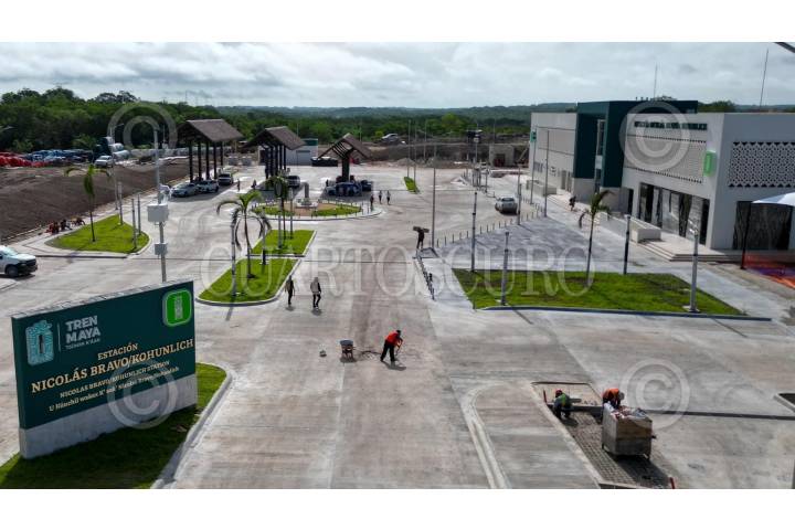 NICOLÁS BRAVO, QUINTANA ROO, 20JULIO2024.- Con un 95?avance, en la Estación Nicolás Bravo-Kohunlich del Tren Maya, se encontrarán andenes, plazas cívicas y áreas de juegos infantiles, además de tesoros como los vestigios de Kohunlich, Dzibanché y el reciente descubrimiento arqueológico en esta zona, así como el Mercado del Bienestar Maya. FOTO: CORTESÍA GOBIERNO DEL ESTADO DE QUINTANA ROO/CUARTOSCURO.COM