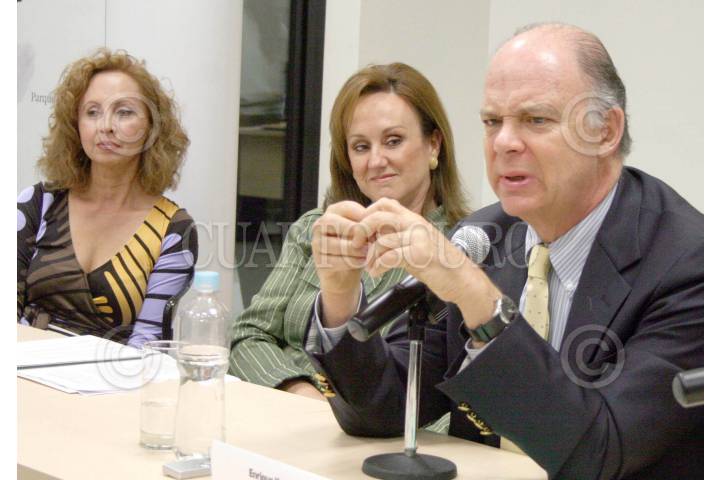 MONTERREY, NUEVO LEON 17OCTUBRE2007.- Álvaro Vargas Llosa, Ricardo Cayuela e ignacio Ramonet en un debate emblematico en el museo de historia mexicana, con el tema: "¿Es bueno el capitalismo para los pobres?", como parte de los dialogos dentro del forum universal de las culturas. FOTO: PEDRO KRISTIAN LOPEZ/CUARTOSCURO.COM