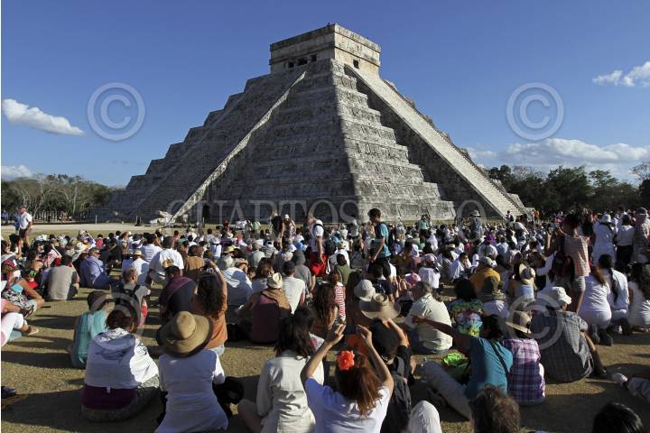 CHICHENITZA, QUINTANA ROO 21MARZO2012.- Visitantes locales y extranjeros asisten a la zona arqueológica de Chichen Itzá para dar la bienvenida a la primavera y presenciar el fenomeno astroarqueológico de luz y sobra. FOTO: FRANCISCO BALDERAS /CUARTOSCURO.COM