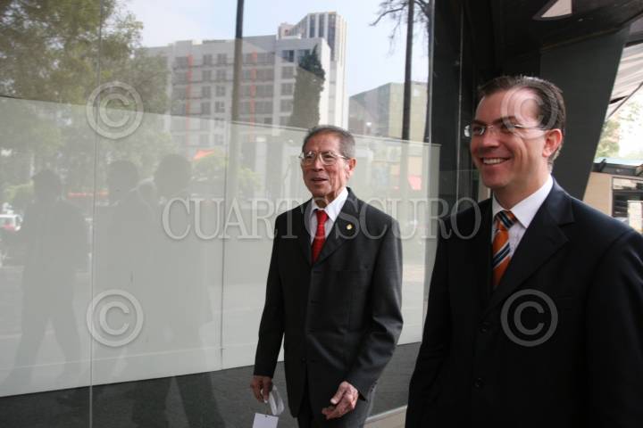 MÉXICO, D.F., 13AGOSTO2009.- Jesús Kumate Rodríguez, exsecretario de Salud, José Ángel Cordova, secretario de Salud, durante la conferencia de prensa con motivo del Foro XXV años del Derecho a la Protección de la Salud. FOTO: CUARTOSCURO.COM
