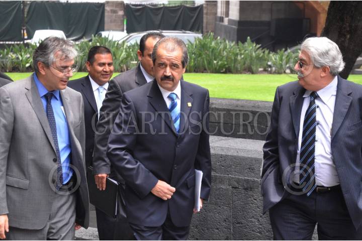 MEXICO D.F. 7MAYO2009. El presidente Felipe Calderón acompañado del secrtario de Salu, José Ángel Cordova Villalobos, se reunio este medio día en la residencia oficial de Los Pinos con los ex secretarios de salud: Juan Ramón de la Fuente , Guillermo Soverón, Jesús Kumate y Antonio Gonzalez. FOTO: ALFREDO GUERRERO/CUARTOSCURO.COM