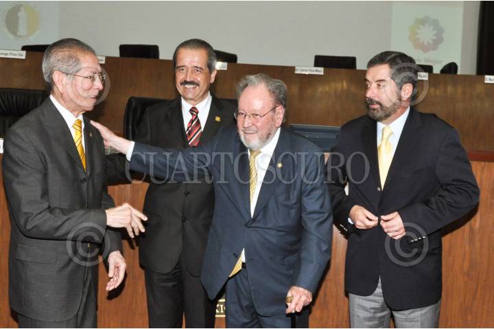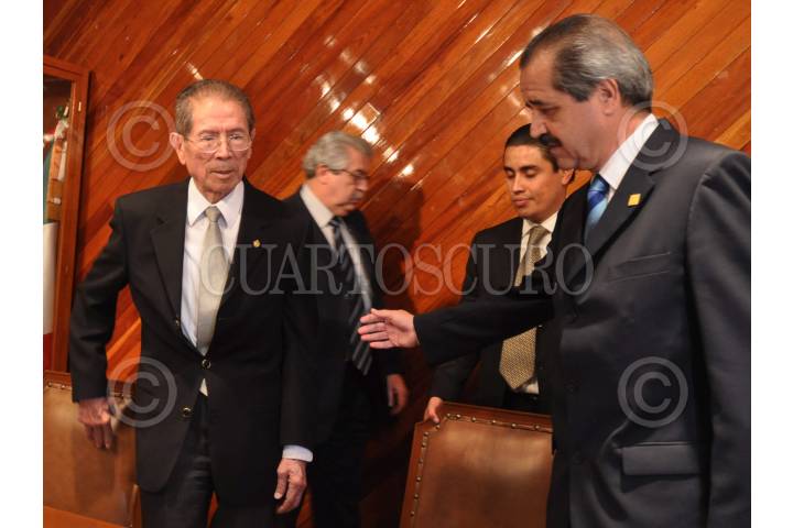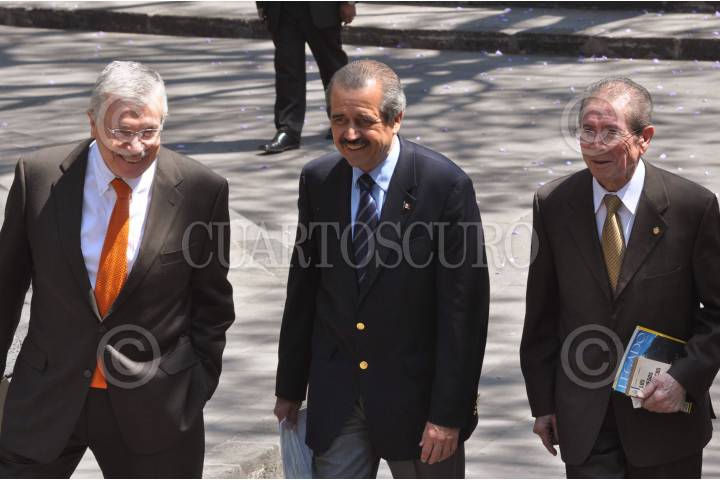 MÉXICO, D.F., 04MARZO2011.- Manuel Ruíz de Chávez , José Ángel Córdova Villalobos, secretario de Salud, y Jesús Kumate, ex-secretario de Salud, durante el lanzamiento de la convocatoria al premio internacional "Manuel Velasco Suárez" a la excelencia bioética. FOTO: EDUARDO MORALES/CUARTOSCURO.COM
