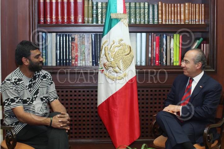 MÉXICO, D.F., 15DICIEMBRE2010.- Kumi Naidoo, Director Ejecutivo de Greenpeace, converso con Felipe Calderón, Presidente de México en la residencia oficial de los Pinos. FOTO: ALFREDO GUERRERO/CUARTOSCURO.COM