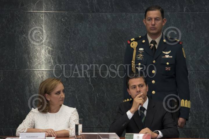 CIUDAD DE MÉXICO, 28ABRIL2017.- Claudia Ruiz Massieu, secretaria general del PRI, y Enrique Peña Nieto, presidente de la República, durante la ceremonia de Reconocimiento al Servicio Exterior Mexicano. FOTO: TERCERO DÍAZ /CUARTOSCURO.COM