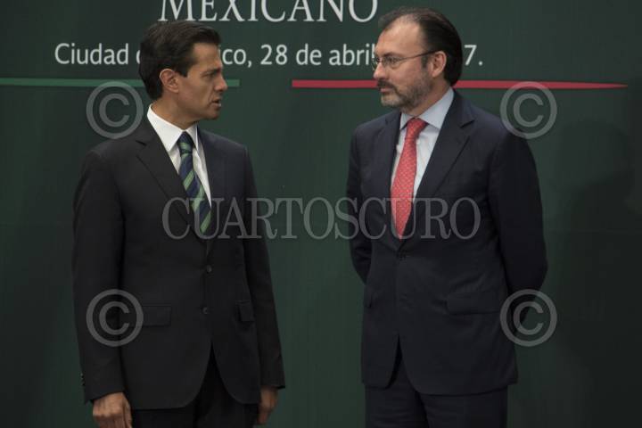 CIUDAD DE MÉXICO, 28ABRIL2017.- Enrique Peña nieto, presidente de la República, y Luis Videgaray, secretario de Relaciones Exteriores, durante la ceremonia de Reconocimiento al Servicio Exterior Mexicano. FOTO: TERCERO DÍAZ /CUARTOSCURO.COM